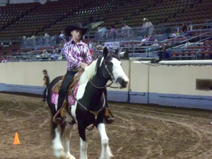 Allow time for settling in and daily exercise on the show grounds. Day one will be spent setting up your area, checking against your list ( thank goodness, Walmart is usually close by) It is helpful to have a stall for cleaning and touch ups for the horse as well as one for the human contingent! For privacy, stall drapes will provide a place to quickly change an outfit or just sit and chill for a moment. A lunge line is useful as well as wraps to keep all that Gypsy hair cleaner. Speaking of which, having tried many things to brighten the whites, marking chaulk is brilliant. A hair dryer can be a handy item, but the chaulk will assist in the drying. This should be attended to on day one. One note here: Most horses travel without any problem. But, it is always advisable to administer a probiotic the day before you leave and for a day or two after arrival. It helps their system settle and the green soup is usually minimized.