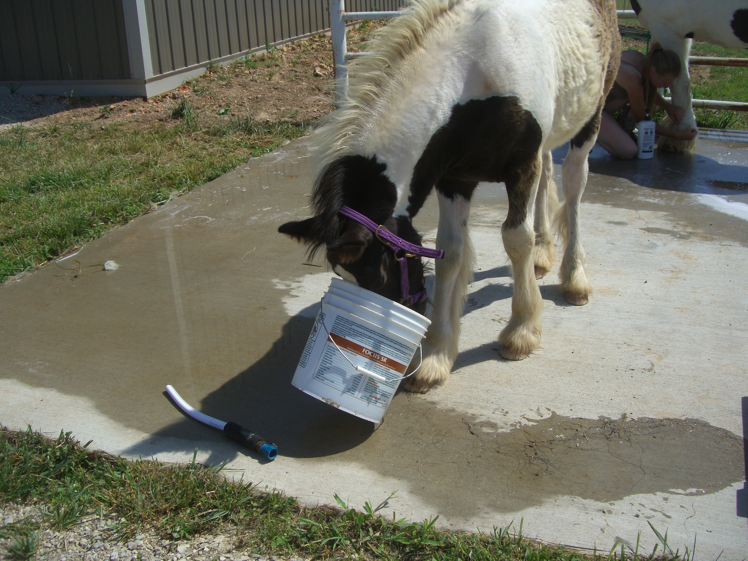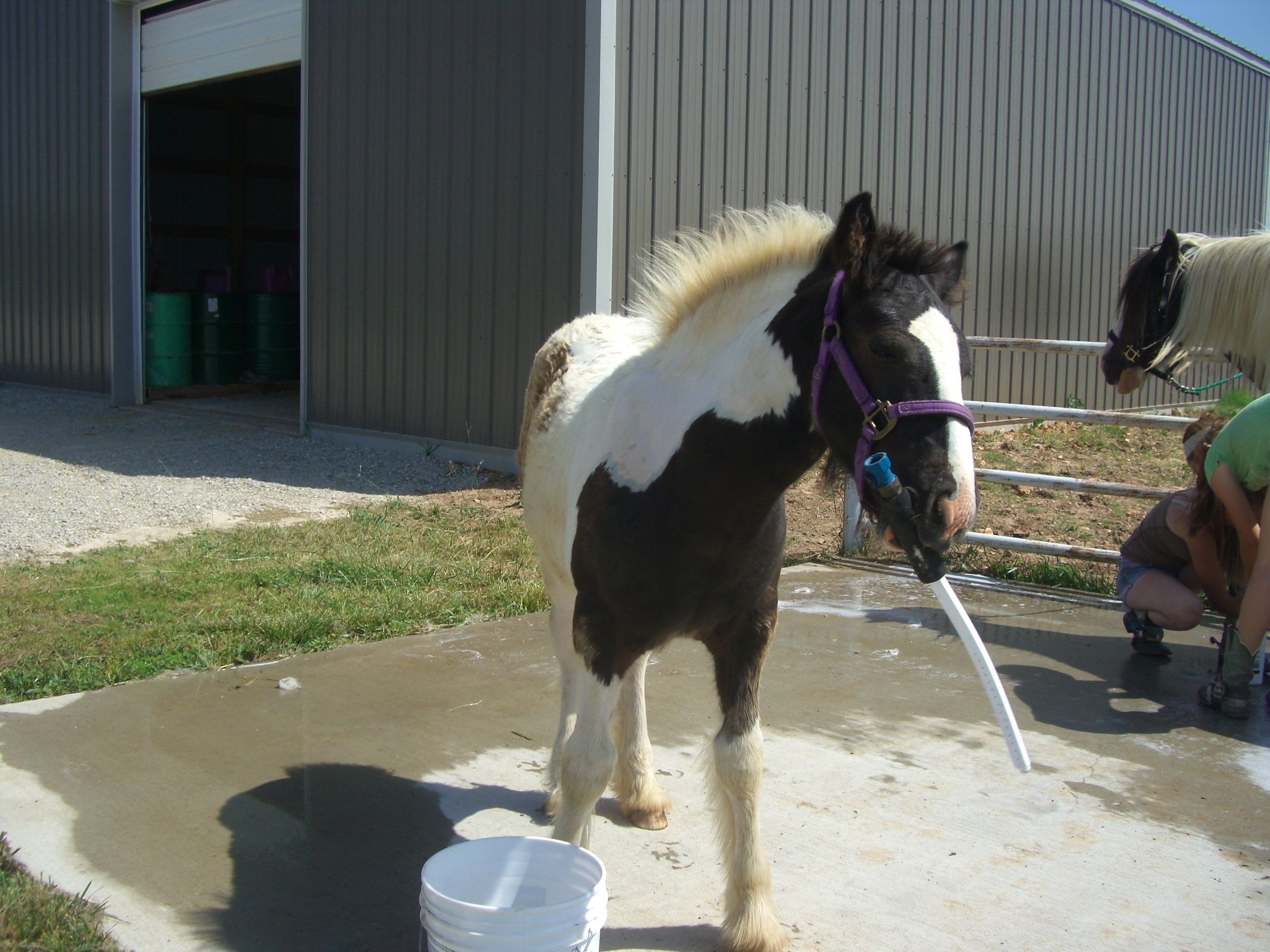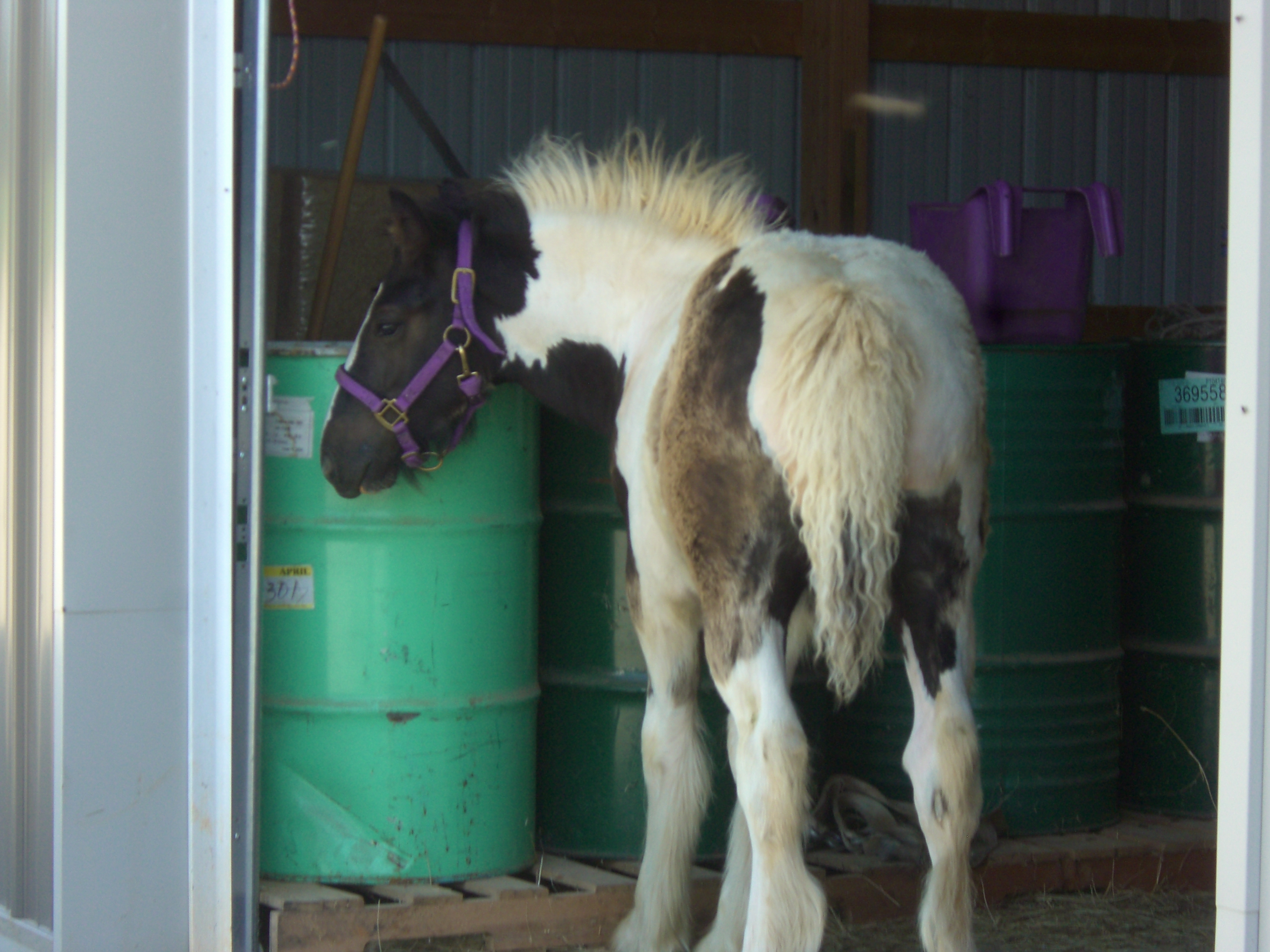 Hi All….we are back again with the Adventures of Otis! Otis, being a curious colt, decided to check out the barn while his Mum was enjoying a bath! Being in pasture is one thing, being in the yard with new things is another! As we watch him check out the barn, the feed barrels, the wash rack and equipment….it occurs to me we can build on this curiosity through training or we can destroy it as we so often see with people who do not understand species other than themselves. Being the first sort…..committed to proper training with understanding and patience, Otis is assured a great start in life. His curiosity will come into play in every aspect of his ongoing time with the humans that live here.
